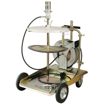 Incluye: Carro metálico portátil, bomba neumática, manguera, pistola manual, conexión Z, cubierta para tambo, plato seguidor y carrete con manguera retráctil.