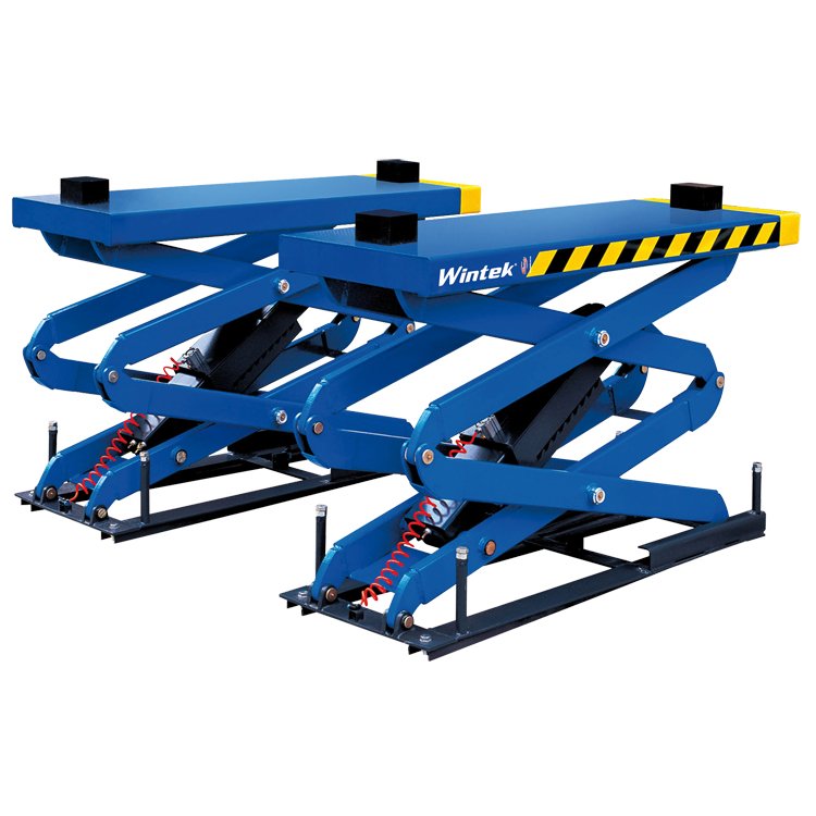 Rampa de levante tipo doble tijera, ideal para talleres con espacio reducido. Capacidad 8000 Lb (3.5 Ton)